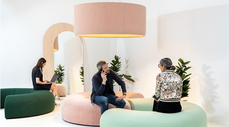 BuzziCee is the newest acoustic seating design by BuzziSpace that gives its sitters options to casually socialize/ work together or to sit apart due to its curved “C” shape. Crafted using innovative insulation foam, the seating design not only provides the utmost noise reduction, but its plush material also creates a sense of coziness and warmth. BuzziCee can be upholstered in a wide range of fabric and color choices—style it alone or group multiple together to make visual statements in environments like office lounges, education reception areas, and numerous other spaces.