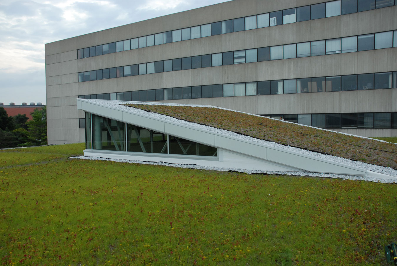 The facility exceeds the LEED system’s 75 percent daylighting benchmark with clerestory windows on both levels and a light monitor that is designed to reduce the use of artificial light. Occupancy sensors also monitor interior spaces to adjust temperature and ventilation.