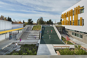 A curriculum that emphasizes environmental science set the tone for the design of the new Hazel Wolf K-8 school in Seattle. As an Environmental STEM (E-STEM) school, the urban facility needed a design that not only featured the typical flexible learning spaces seen in most of today’s 21st century schools, but also interior labs, green walls, outdoor learning spaces and gardens for students to get a well-rounded environmental education.